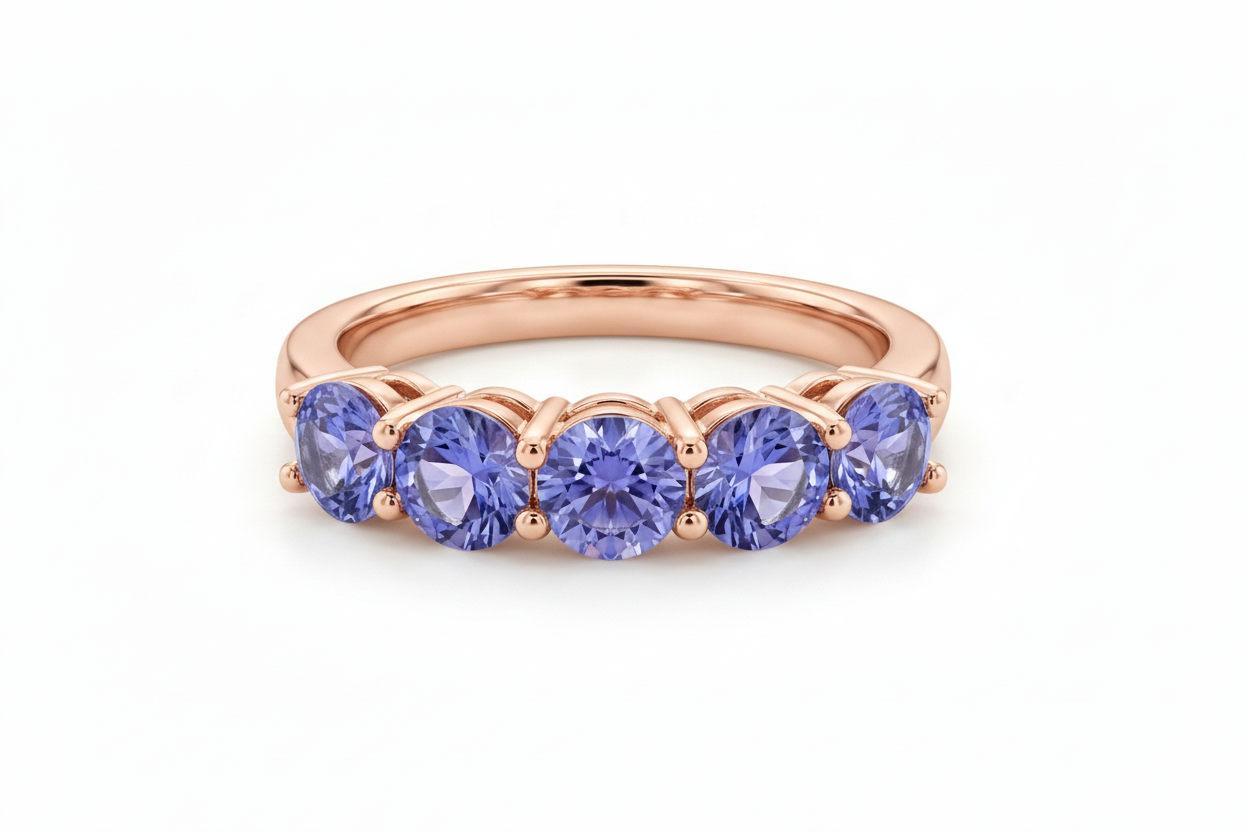 אבני טורמלין כחול (Indicolite) משובצות בשורה בשיבוץ